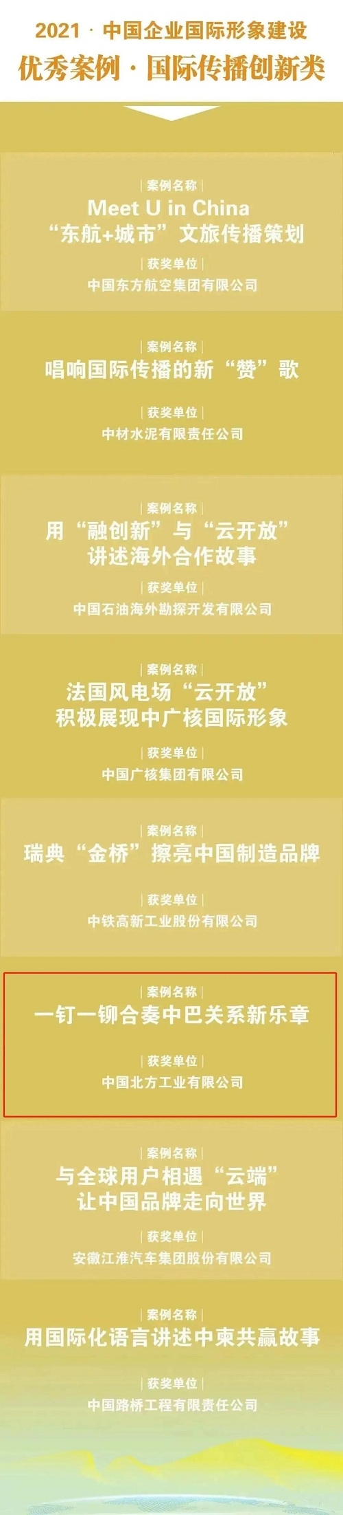 北方公司海外項(xiàng)目案例入選2021·中國(guó)企業(yè)國(guó)際形象建設(shè)“國(guó)際傳播創(chuàng)新類”優(yōu)秀案例
