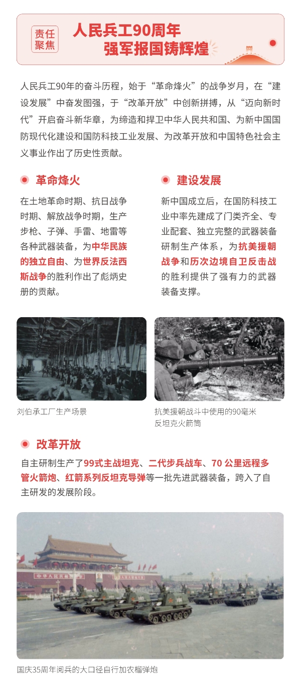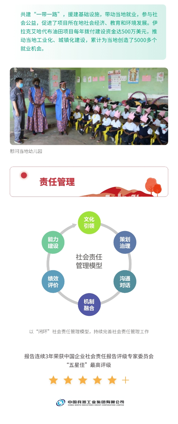 近日,兵器工業(yè)集團(tuán)正式發(fā)布第十三份年度社會(huì)責(zé)任報(bào)告——《中國(guó)兵器工業(yè)集團(tuán)有限公司2021年社會(huì)責(zé)任報(bào)告》,以“用心守護(hù)和平、用力爭(zhēng)創(chuàng)一流、用情溫暖社會(huì)”為主題,從恪守強(qiáng)軍首責(zé)、服務(wù)經(jīng)濟(jì)建設(shè)、共創(chuàng)美好生活三個(gè)維度,向社會(huì)全面披露2021年度履責(zé)實(shí)踐和履責(zé)業(yè)績(jī)?!秷?bào)告》連續(xù)第三年獲得中國(guó)企業(yè)社會(huì)責(zé)任報(bào)告評(píng)級(jí)專家委員會(huì)“五星佳”評(píng)級(jí),兵器工業(yè)集團(tuán)成為軍工行業(yè)唯一連續(xù)11年獲得五星及五星佳最高評(píng)級(jí)的企業(yè)。 一圖解碼兵器工業(yè)的“責(zé)任力量” |
