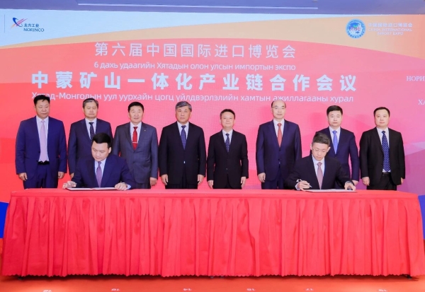 11月4日,中蒙礦山一體化產(chǎn)業(yè)鏈合作會(huì)議在上海舉行,圍繞蒙古礦山一體化項(xiàng)目拓展延伸上下游產(chǎn)業(yè)鏈,共簽署4項(xiàng)合作協(xié)議,進(jìn)一步深化各方互利合作,促進(jìn)產(chǎn)業(yè)鏈融通發(fā)展。蒙古國政府部長、國家大呼拉爾委員博爾呼·德力格爾塞汗,駐華特命全權(quán)大使圖布辛·巴德爾勒,大呼拉爾委員特木爾陶高·恩和圖布行,部長、國家口岸復(fù)興委員會(huì)主席布亞·圖力嘎,國務(wù)院國資委副主任茍坪,國際合作局局長朱凱,商務(wù)部亞洲司司長王立平,中國北方工業(yè)集團(tuán)有限公司總經(jīng)理、黨組副書記劉大山,副總經(jīng)理植玉林,內(nèi)蒙古自治區(qū)黨委常委、包頭市委書記丁繡峰,鞍山市委書記王忠昆,鞍鋼集團(tuán)黨委常委、副總經(jīng)理、鞍山市委常委王義棟,包頭鋼鐵(集團(tuán))有限責(zé)任公司黨委書記、董事長孟繁英,中國北方工業(yè)有限公司總裁陳德芳出席會(huì)議并見證簽約。北方國際合作股份有限公司董事長、黨委書記紀(jì)巍主持會(huì)議。