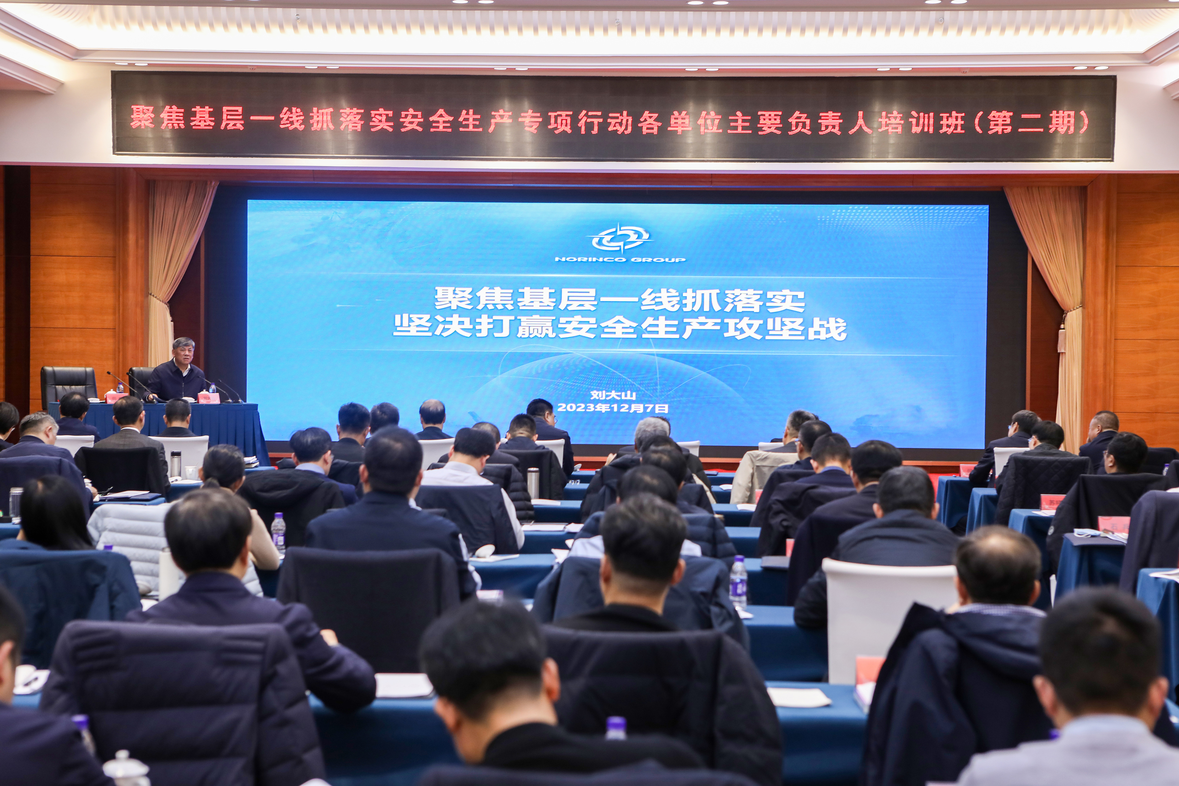 12月7日-8日,中國兵器工業(yè)集團(tuán)有限公司在北京舉辦聚焦基層一線抓落實(shí)安全生產(chǎn)專項(xiàng)行動(dòng)主要負(fù)責(zé)人專題培訓(xùn)班(第二期),深入學(xué)習(xí)貫徹習(xí)近平總書記關(guān)于安全生產(chǎn)重要論述和重要指示批示精神,認(rèn)真落實(shí)中央巡視關(guān)于安全生產(chǎn)的反饋意見,貫徹落實(shí)集團(tuán)公司關(guān)于聚焦基層一線抓落實(shí)安全生產(chǎn)專項(xiàng)行動(dòng)部署要求,通過工作解讀、安全履職、交流研討等模塊培訓(xùn),進(jìn)一步增強(qiáng)各級領(lǐng)導(dǎo)聚焦基層一線抓落實(shí)的政治自覺思想自覺行動(dòng)自覺,堅(jiān)決打贏安全生產(chǎn)攻堅(jiān)戰(zhàn),筑牢集團(tuán)公司高質(zhì)量發(fā)展的安全基石。集團(tuán)公司總經(jīng)理、黨組副書記劉大山出席培訓(xùn)班開班式并作專題授課,黨組成員、總會(huì)計(jì)師張華,黨組成員、副總經(jīng)理鄒文超、植玉林、閆哲出席開班式,閆哲主持。