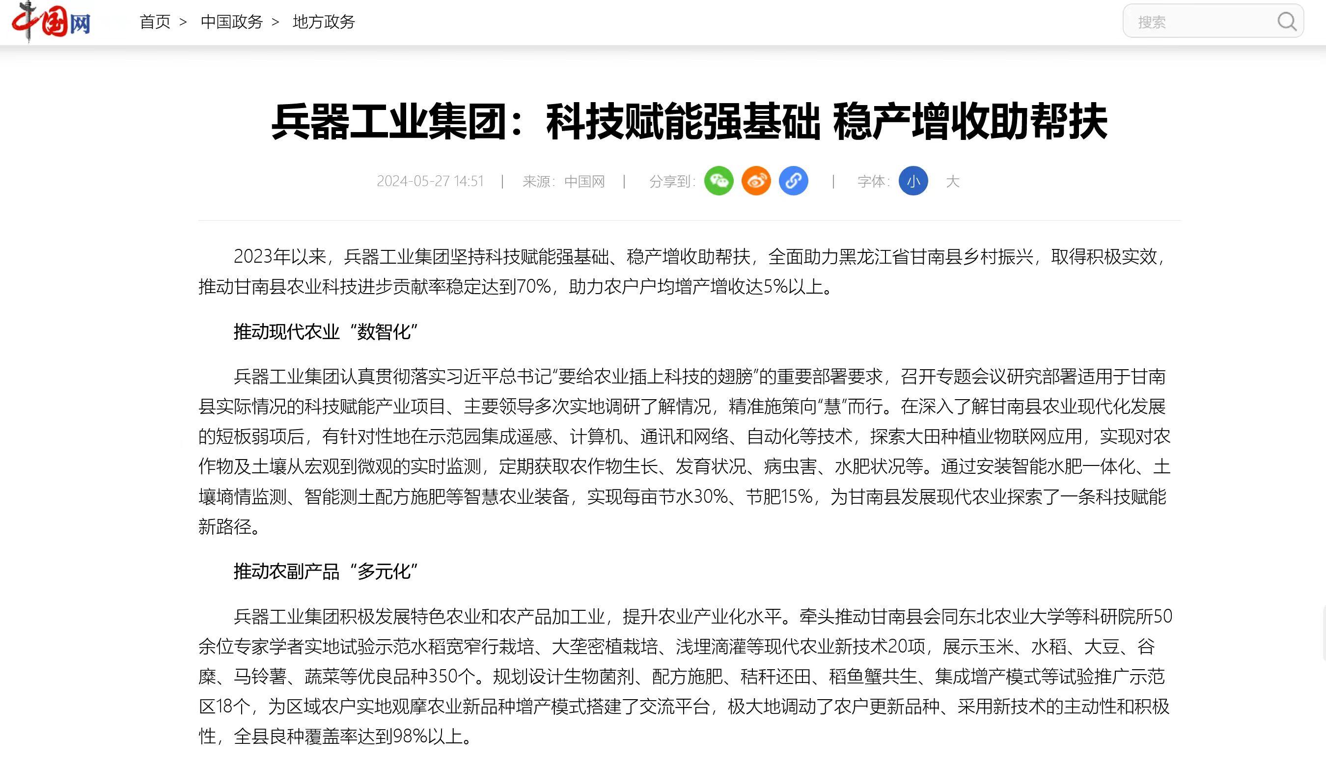 中國網報道兵器工業(yè)集團科技賦能 助力黑龍江省甘南縣鄉(xiāng)村振興